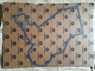 Прокладка R119384 передней крышки двигателя 6081 для техники джон дир: 1185, 1270D, 1270E, 1400, 1450, 1450CWS, 1470D, 1470E, 1570, 1710D, 1910E, 2254, 2264, 250D, 2854, 300D, 330LC, 330LCR, 350DLC, 350GLC, 3510, 3520, 3522, 3554, 370C, 3754D, 380GLC, 4920, 4930, 4940.
